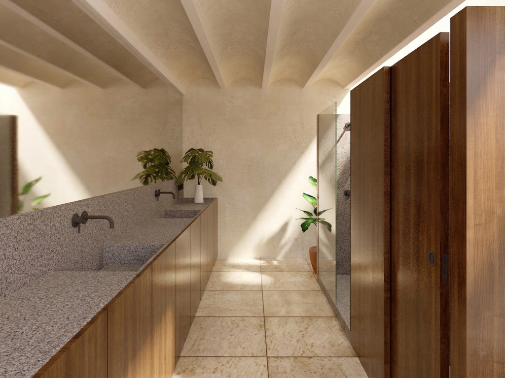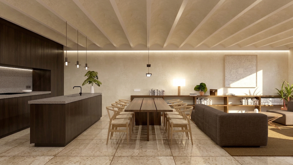 La il·luminació natural esdevé l’element estructurador, penetrant a l’interior i ressaltant la textura dels materials nobles. La combinació de la fusta de noguera, els tons sorra i el joc de llistons de la façana permeten regular la privacitat i el guany tèrmic, creant una atmosfera de calidesa contemporània. La Casa CC és, en definitiva, un exercici d’equilibri entre la tradició local i una arquitectura moderna que prioritza el benestar, l’obertura exterior i la coherència material.