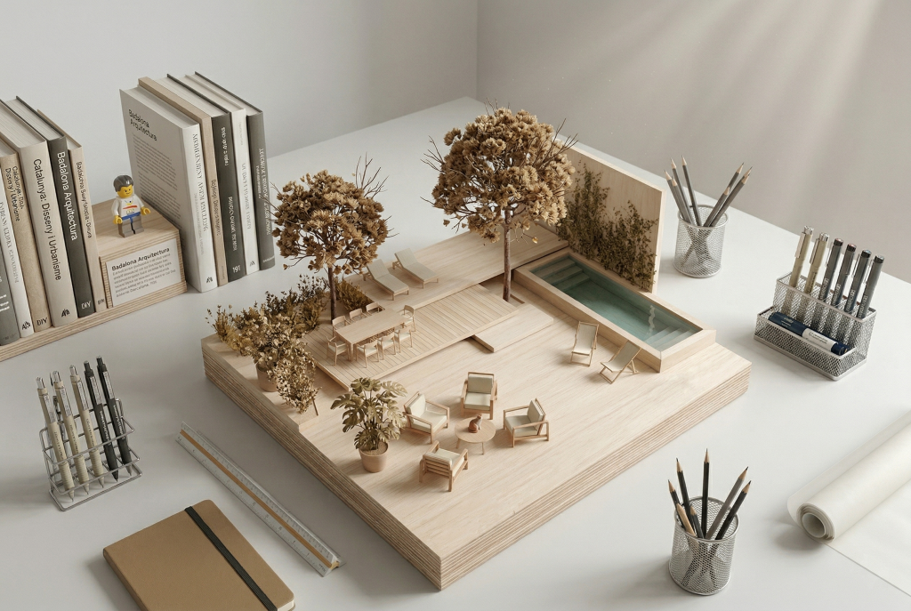 La selecció de materials, amb la calidesa de la fusta i la sobrietat de les superfícies pètries, busca l’harmonia amb la vegetació existent. El resultat és una zona d’aigua integrada i serena, on el disseny horitzontal de les plataformes permet que la mirada es desplaci sense obstacles cap a l’horitzó, convertint el jardí en un espai de calma i confort.