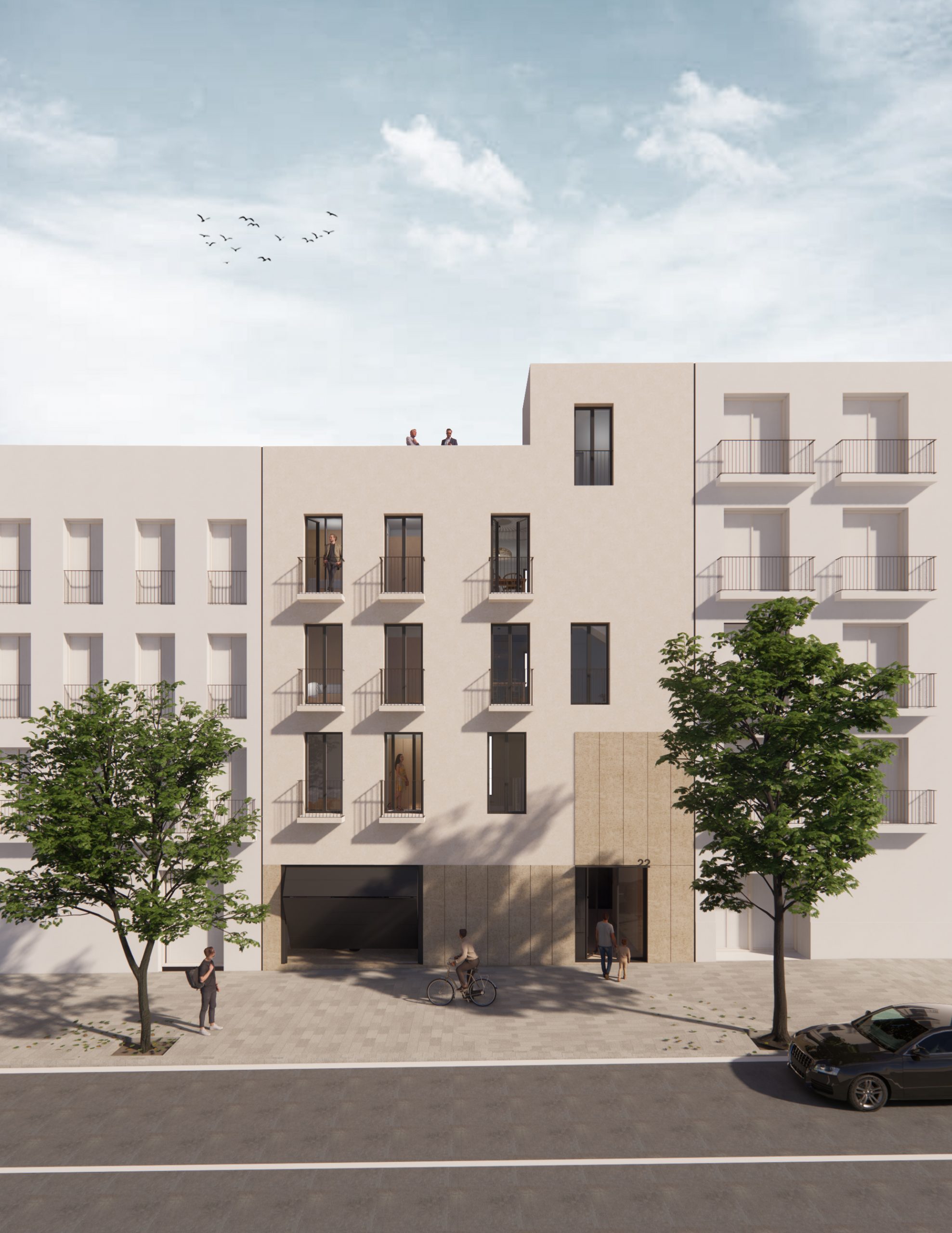 Es persegueix una integració volumètrica i estètica amb les edificacions preexistents del veïnatge. Per a això, s’ha adoptat un llenguatge formal, un tractament de textures de façana i un sistema de proporcions i obertures que estableixen una relació dialògica amb l’entorn, sense renunciar a la seva singularitat compositiva i autonomia projectual.