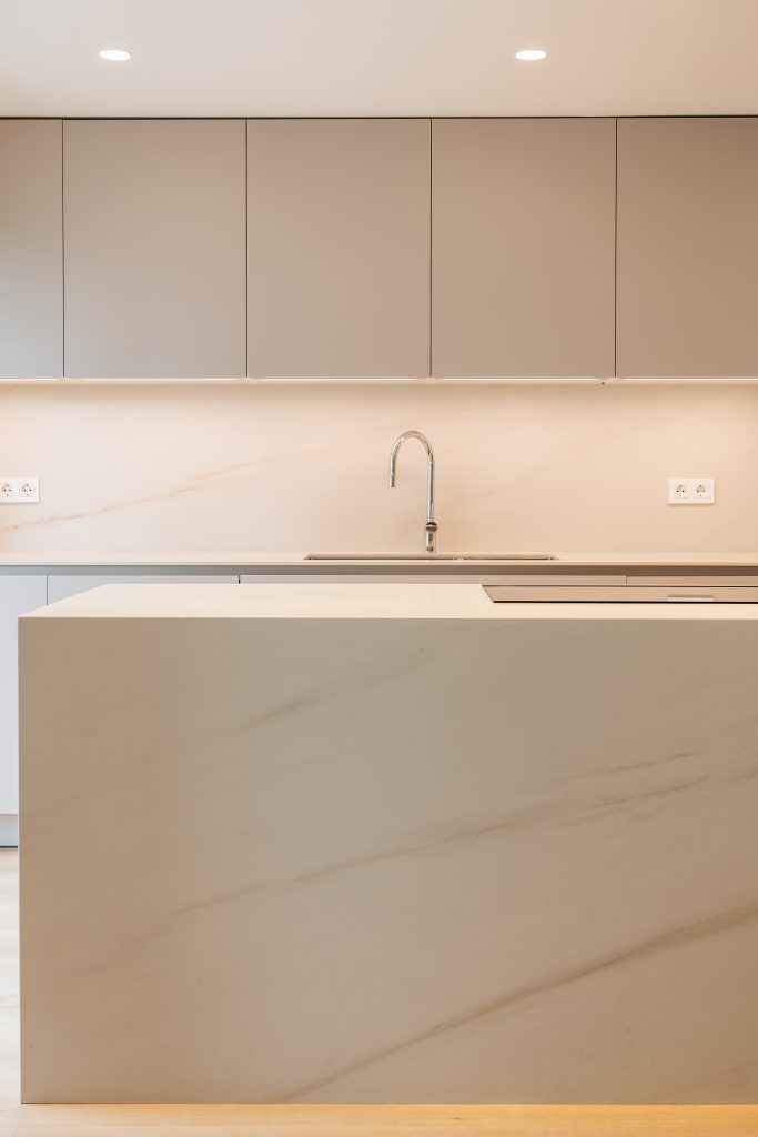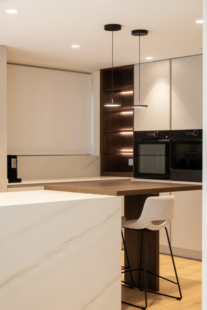 El projecte dona un protagonisme especial a la cuina, que s’amplia i s’integra visualment amb la zona de dia (sala d’estar i menjador). Aquesta nova configuració converteix la cuina en el cor social de la llar, ideal per a l’estil de vida contemporani.