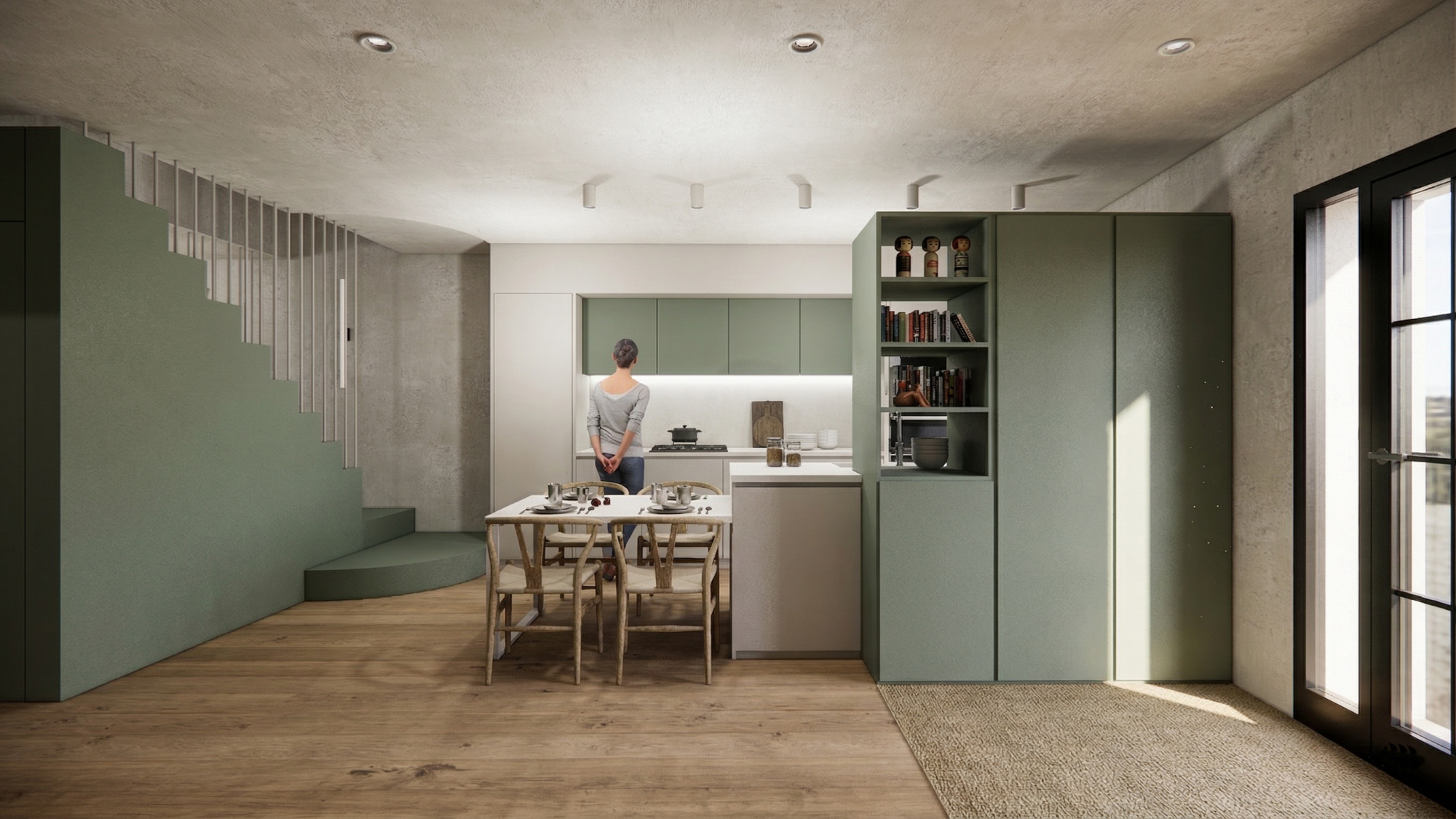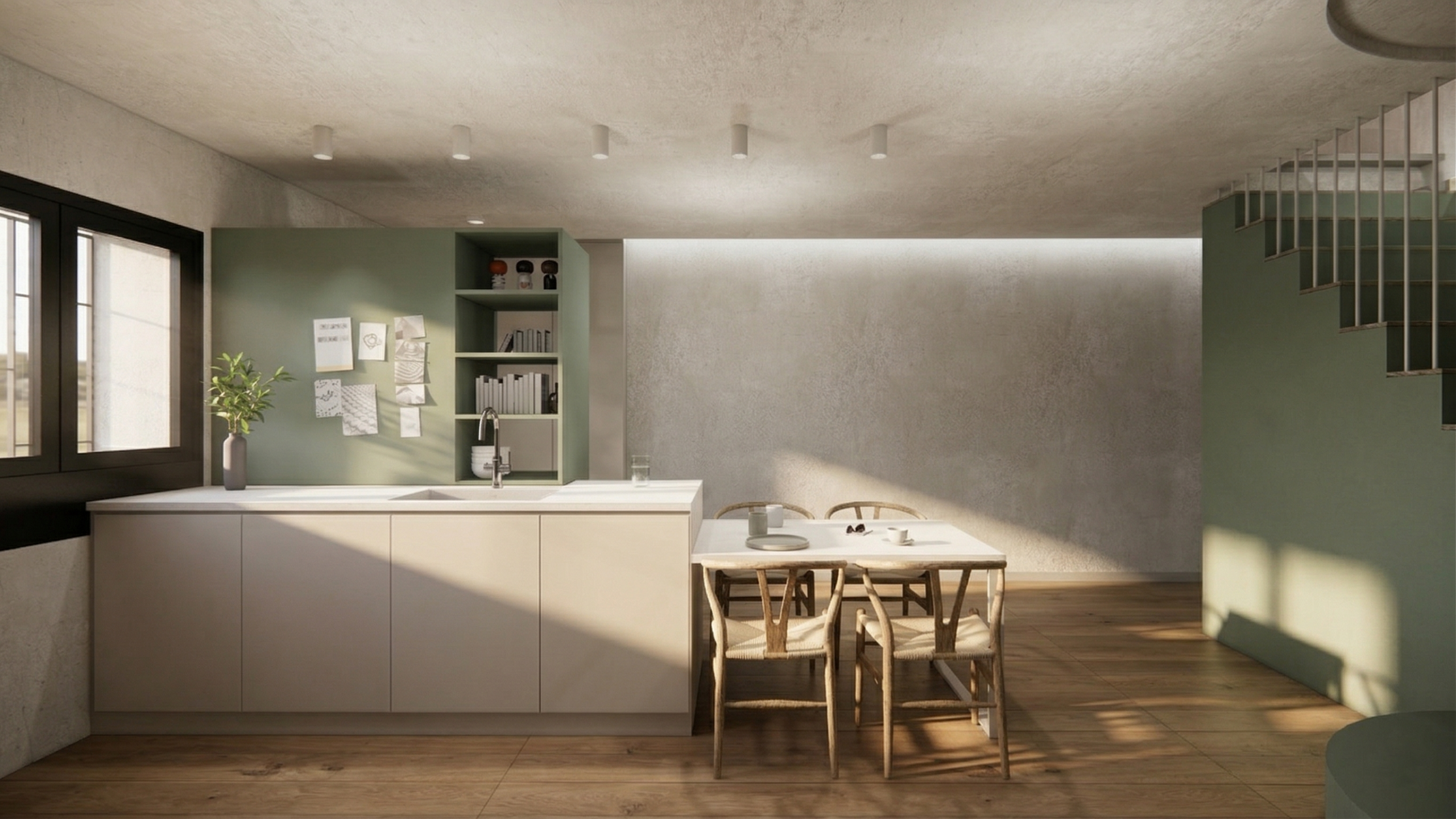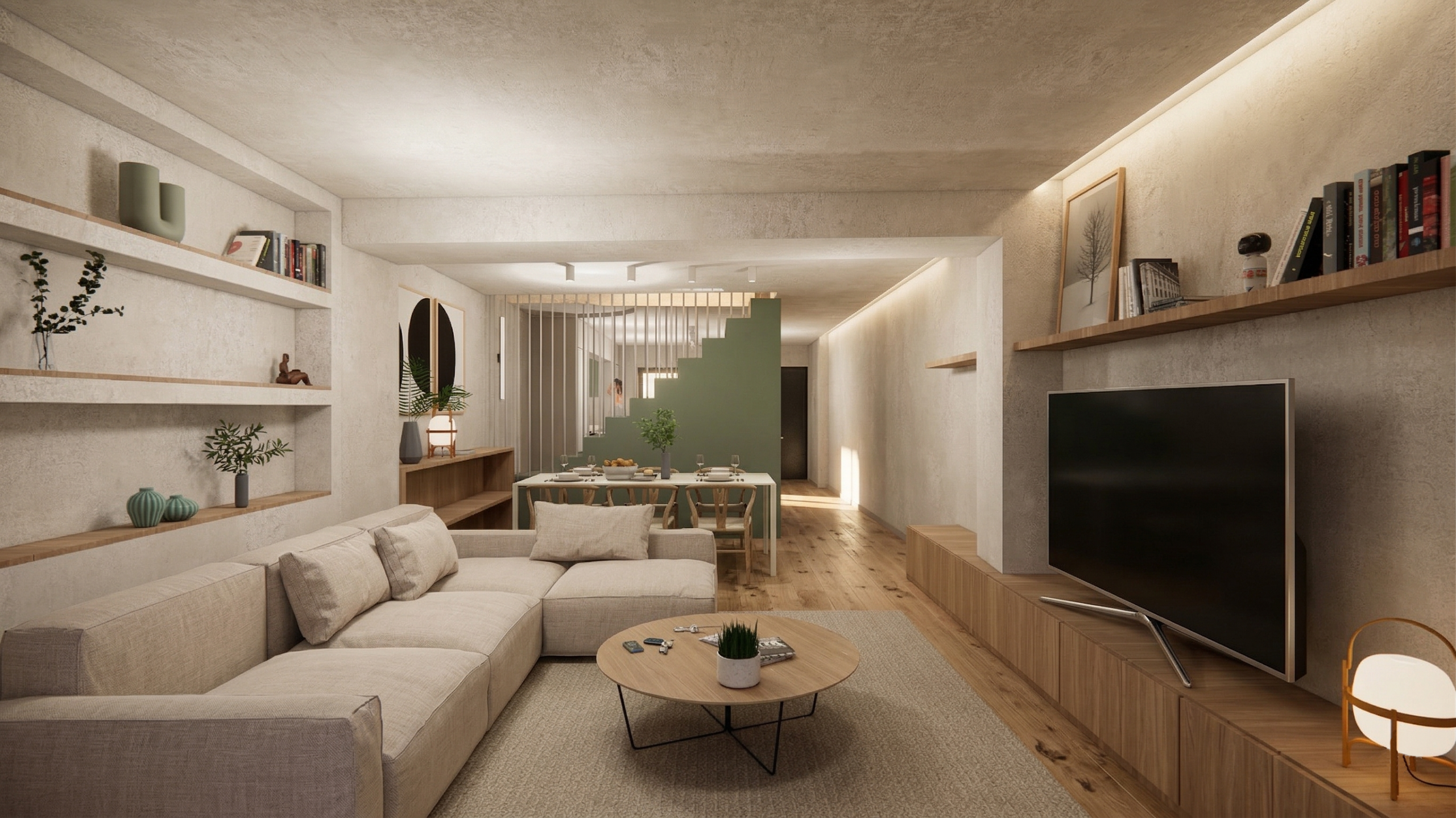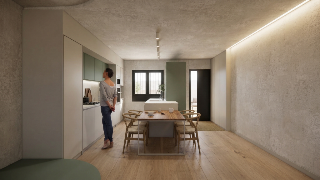 Casa Verda no només resol les necessitats funcionals, sinó que es presenta com un llenç on l’espai, la llum i el color convergeixen. Cada element, cada material, cada detall s’integra en una composició coherent que transforma les limitacions dimensional en una arquitectura rica, elegant i acollidora.